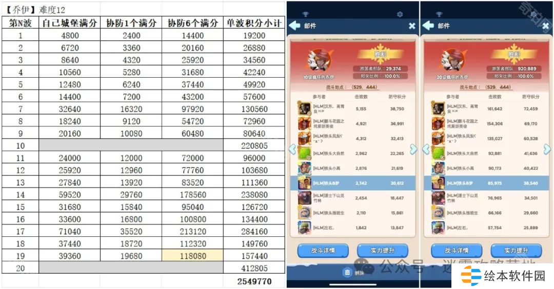 难度12比难度11的分数每波增加了10%左右,“满分”是2549770分。如下: