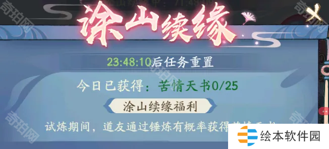 仙玉购买,每天可购买3次总计18个苦情天书,3天54个苦情天书