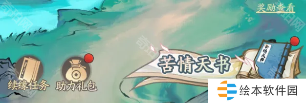使用道具苦情天书,可以增加苦情树续缘的进度,续缘进度有10,20,30,50四种,续缘进度满后可提高苦情树的重天,获得续缘奖励,达到65重天一共可以获得召唤令101,净瓶水350,御灵石1690,仙桃1365,玄黄果7250,自选神话法宝碎片箱×25,东方月初×150,传说自选灵兽×1,洗练自选宝箱×125,神话法宝王权剑×1