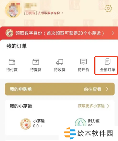 1、首先打开i茅台app,在我的页面中找到全部订单