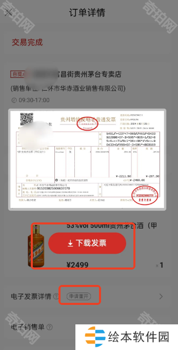如果需要重新开电子发票,按下电子发票详情右侧的申请重开即可