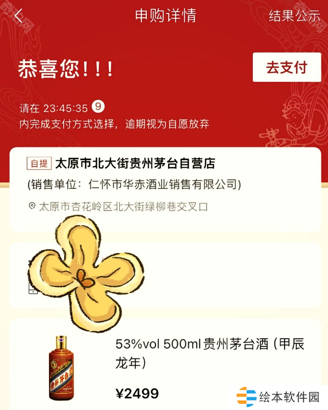 4、如果我们成功申购的话app会发送短信提示,同时在app中也会有一个庆祝申购成功的页面,完成支付即可