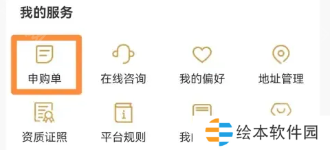 2、在我的页面中找到我的服务,点击进入下方的申购单