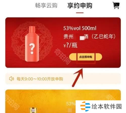 4、在这个页面中我们可以看到乙巳蛇年的茅台,按下点击预申购