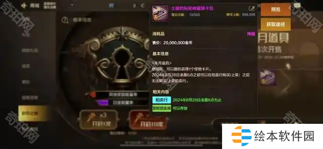 开启的时候有一定的概率或者神器卡片礼包和复古装扮等奖励