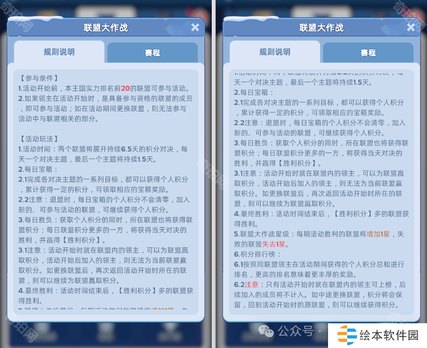 2.如果领主在活动开始时,是具备参与资格的联盟的成员即可参与活动:如在活动期间更换联盟,则无法参与活动中与联盟相关的部分