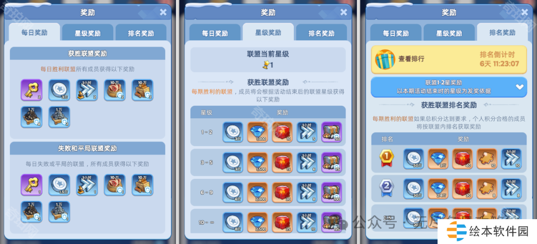 1.奖励分为每日奖励--联盟星级奖励---联盟成员奖励