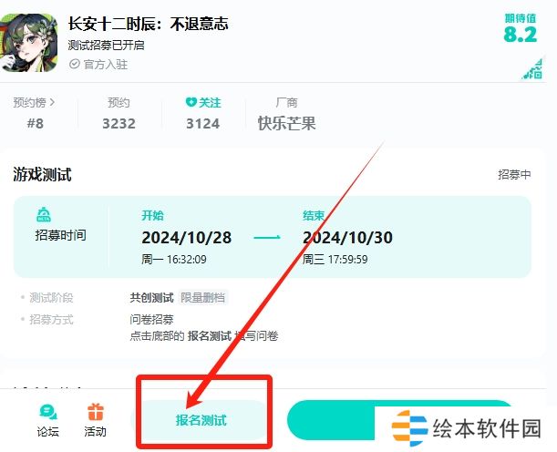 前往Tap商店页预约游戏,点击【报名测试】获得测试资格!