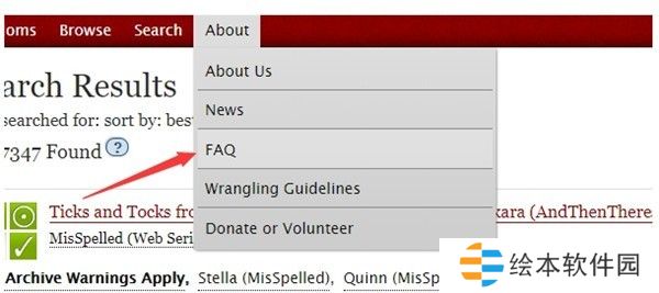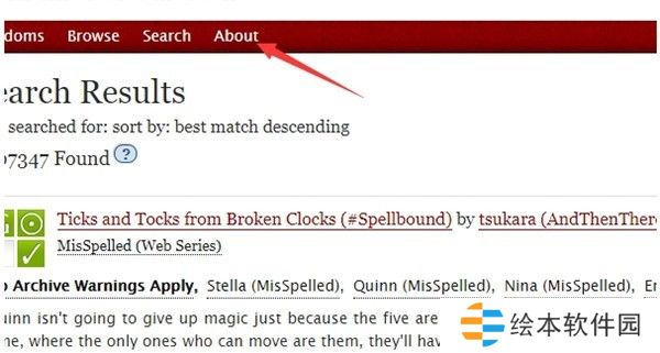 1、首先我们开启ao3的网页,点击主界面左上方如图所示的about。