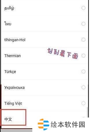 3、最后我们进到语言设置页面,下拉到底部寻找中文。