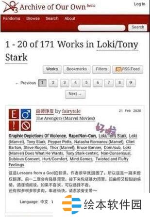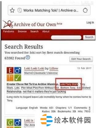 1、大家在手机上使用浏览器打开ao3网址,点击如图所示的toki/tonystark。