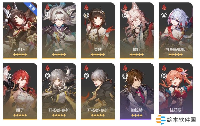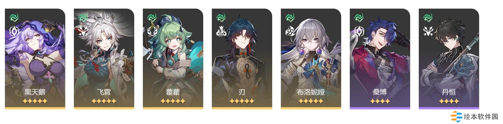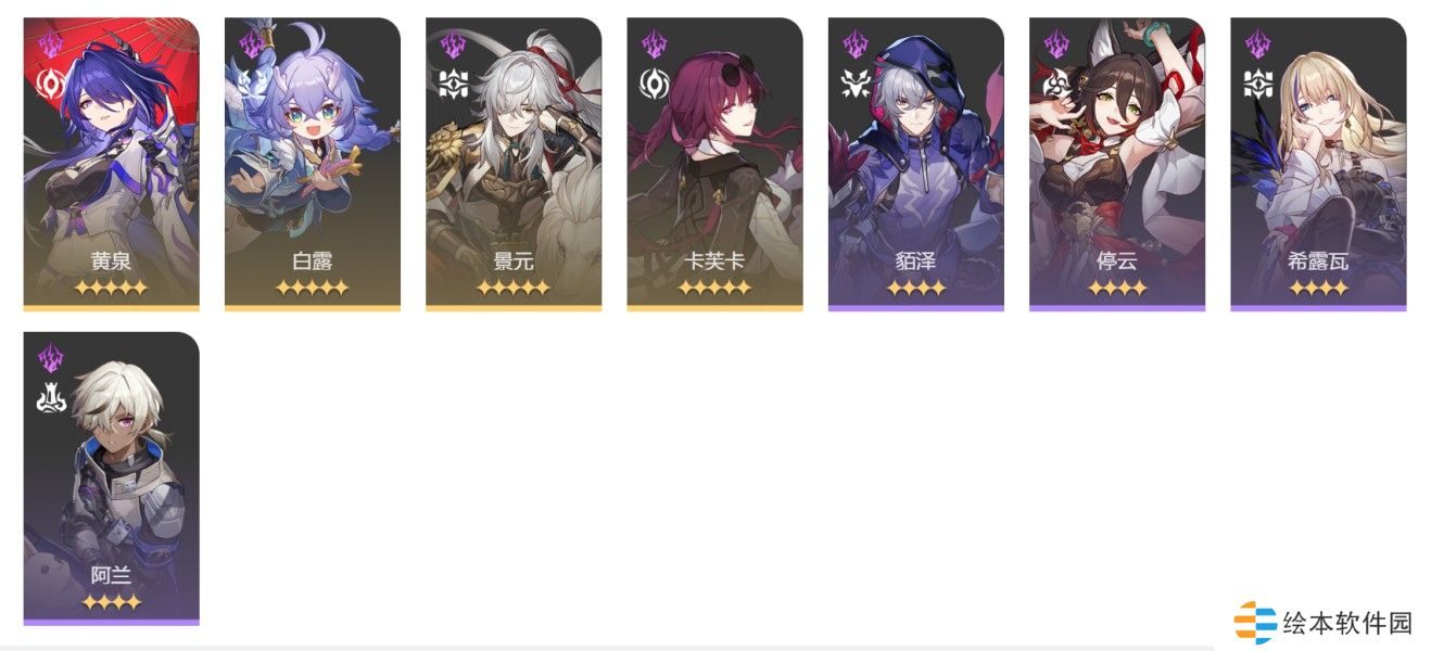 1、饮月、花火、罗刹(砂金)、停云(知更鸟、鸭鸭)