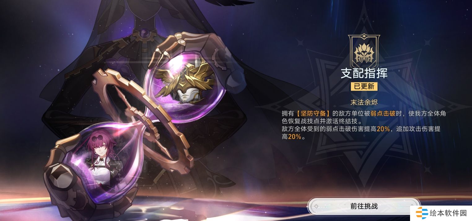 崩坏星穹铁道末日幻影支配指挥怎么打?支配指挥-末法余烬,击破敌人弱点,恢复战技点恢复战技点同时激活终结技;敌方受到击破伤害提高20%,追加攻击伤害提升20%,那么具体的接下来就跟着小编一起来了解一下《崩坏星穹铁道》末日幻影支配指挥打法攻略。