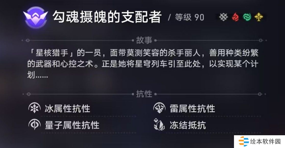 --传递:将弱点属性传递给目标,目标被消灭后造成额外韧性值削减,弱点属性会在所有获得弱点属性的目标被消灭后返回。