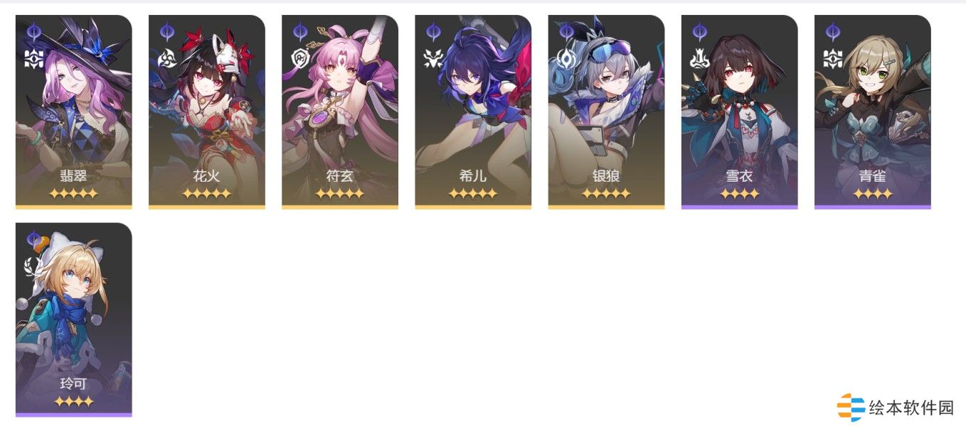 5、翡翠、姬子、阮梅(知更鸟)、砂金(灵砂)