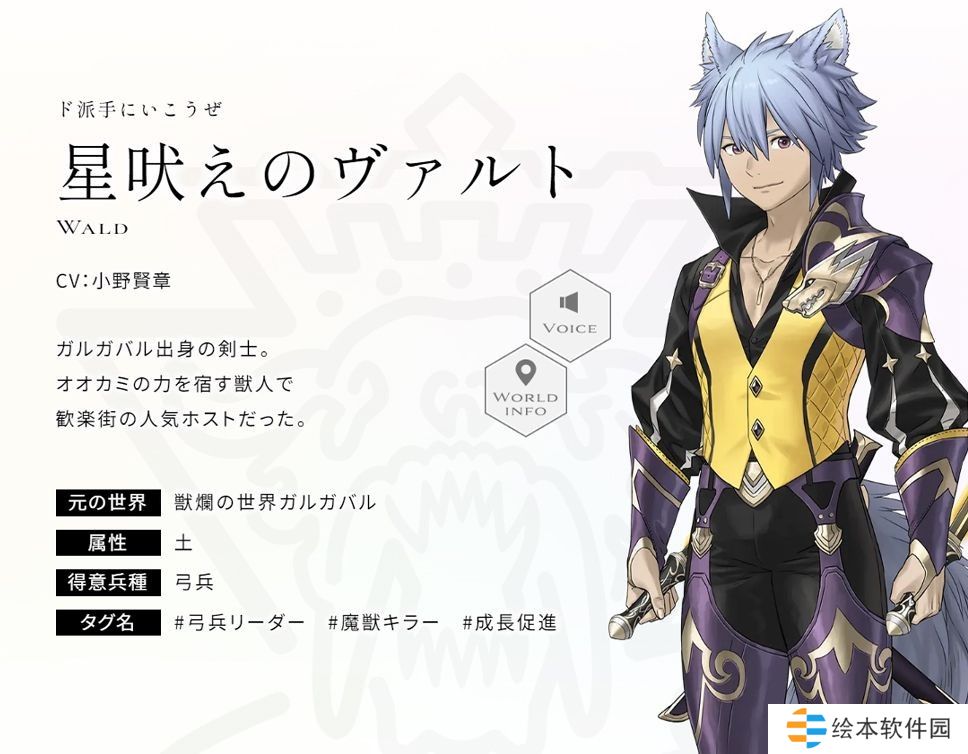 加尔加巴出身的战士。寄宿着狼之力的兽人,曾是繁华街的人气男公关。