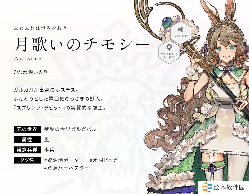 加尔加巴出身的公关小姐。感觉软绵绵的兔子兽人。『Spring Rabbit』实质上的店主。
