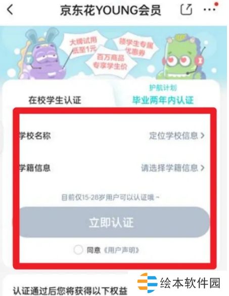 3、输入“学校名称及学籍信息”点击“立即认证”即可认证。