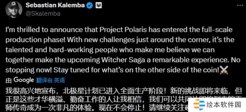 他表示,他很高兴宣布《Project Polaris》已经进入全面制作阶段。新的挑战就在眼前,正是这些充满才华且努力工作的人们,让他相信他们可以一起让即将推出的《巫师》传奇成为非凡的体验,现在不能停下,请大家期待硬币另一面的内容。
