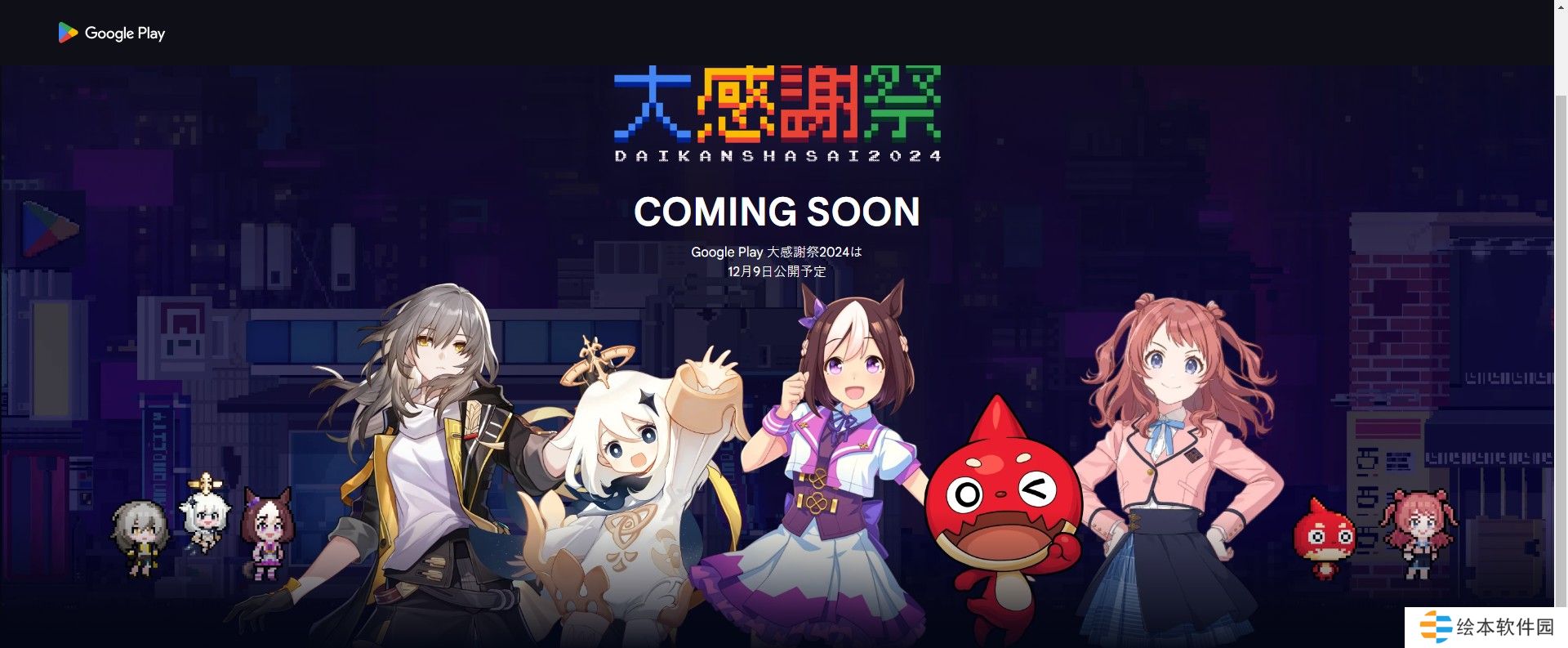 日本 Google Play 官方 X 帐号自 11 月 22 日起陆续分享了多张 GIF,预告于 11 月 27 日发表新消息。11月27日官方正式宣布将举办「Google Play 大感谢祭 2024」,活动网页(需日本 Google Play 帐号)中也能看到《赛马娘 Pretty Derby》的特别周、《原神》的派蒙、《崩坏:星穹铁道》的星、《怪物弹珠》的傲拉龙、《学园偶像大师》的花海咲季等预告中的人物登场。