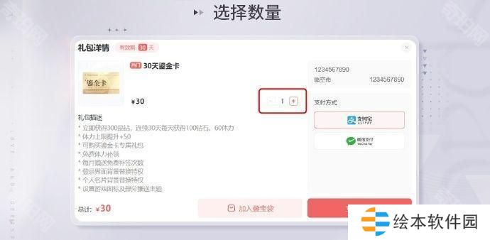 2、选择要购买的数量和支付方式后点击右下方的立即购买即可