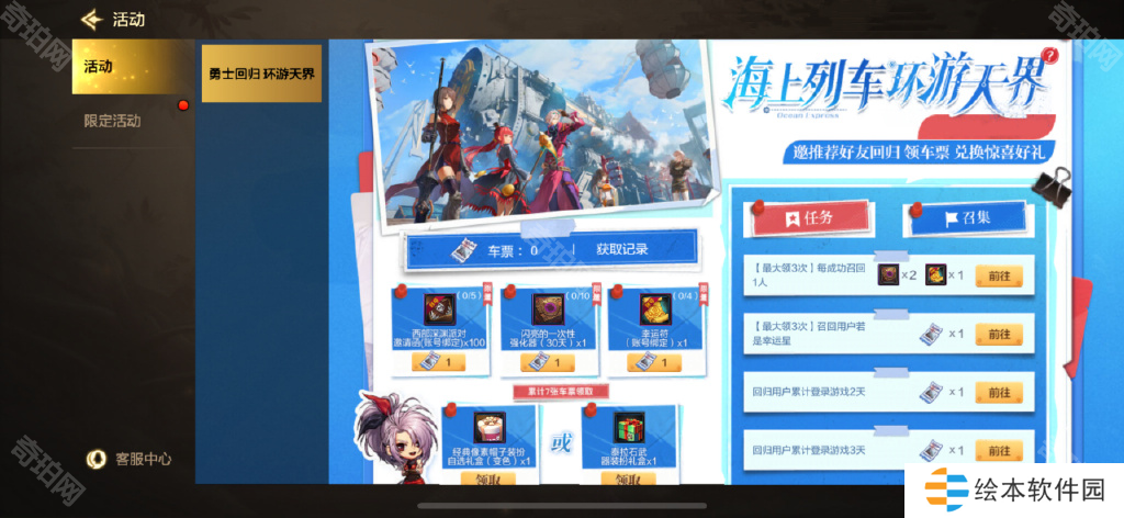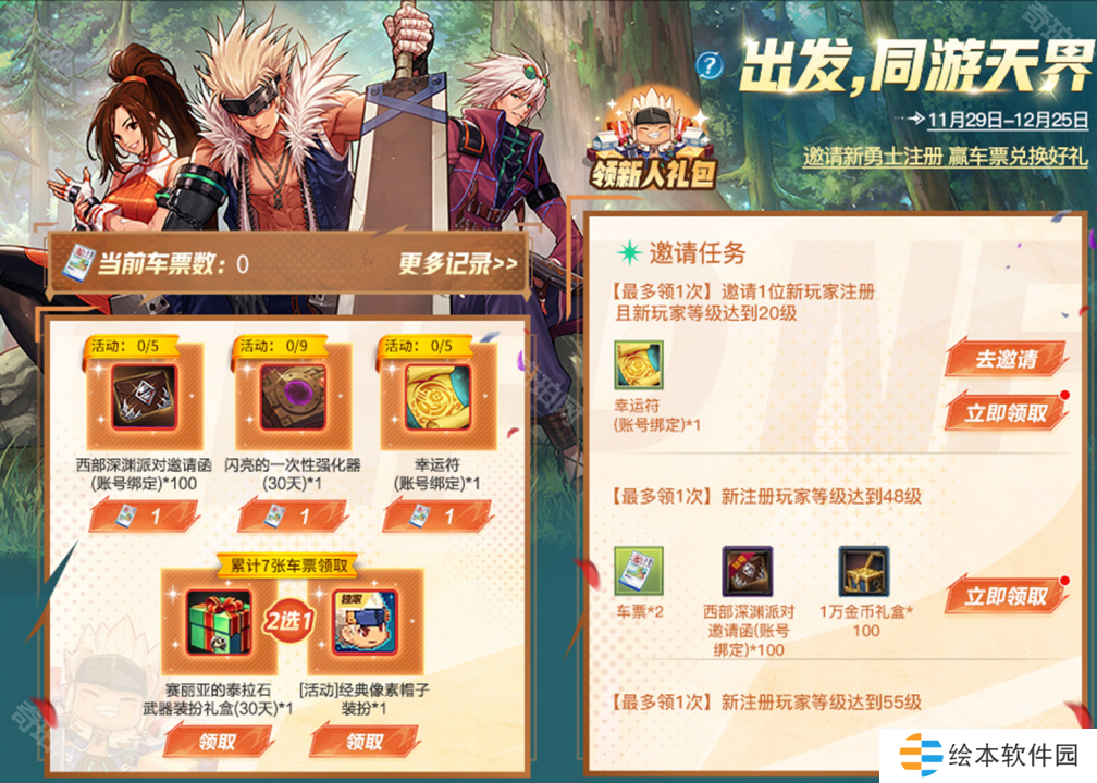 回归的好友累计登录游戏、与回归的好友一起组队攻坚降临:罗特斯,可以获得车票