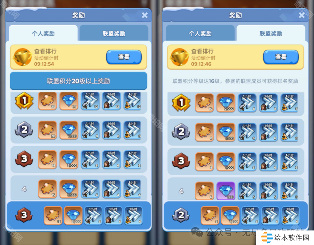 2、个人来看,相比于冻土之王的奖励来说,联盟大作战的奖励远远是低于冻土给的奖励,同时冻土奖励又是少于最强王国奖励。