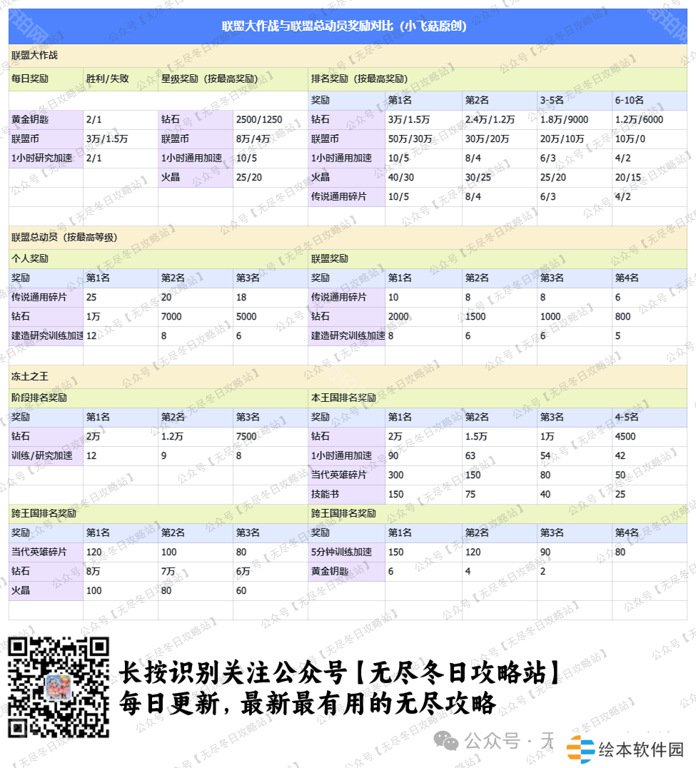 《无尽冬日》联盟大作战和联盟总动员奖励对比一览