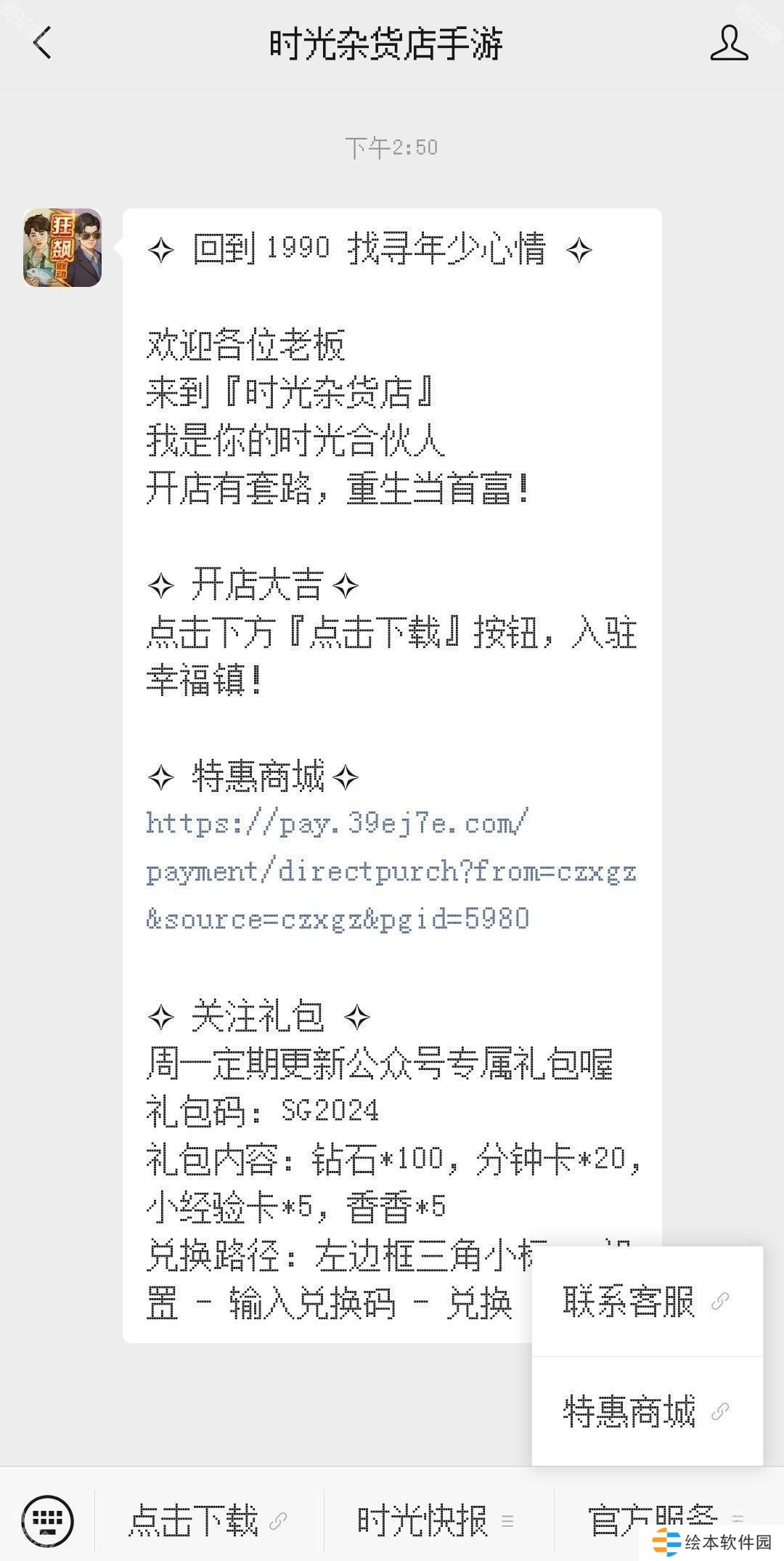 进入微信→关注官方公众号【时光杂货店手游】→官方服务→联系客服