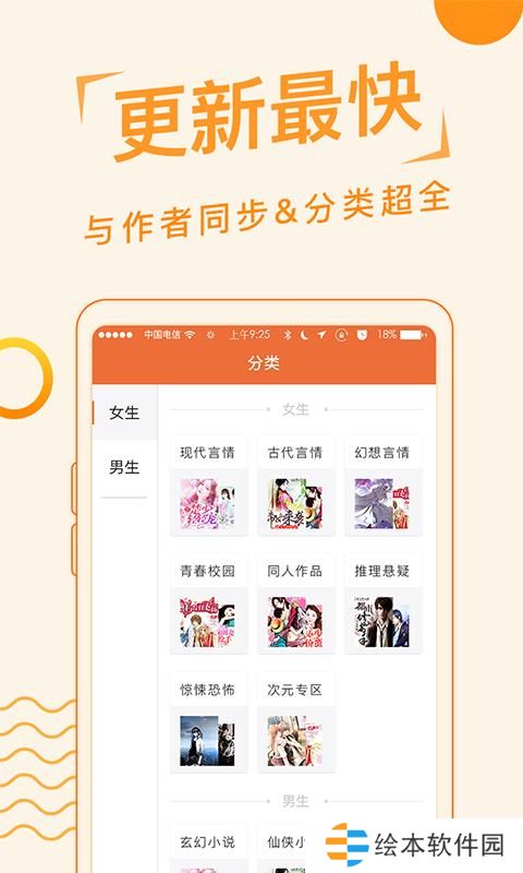 6、男频和女频的小说不尽相同,男生和女生可以一次找到符合自己取向的海量小说。