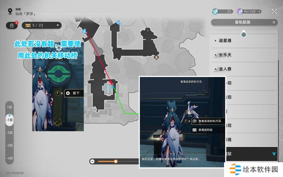 如图所示找到「鬼鬼祟祟的机巧鸟」(若路线不通,则需要找到机关移动桥)