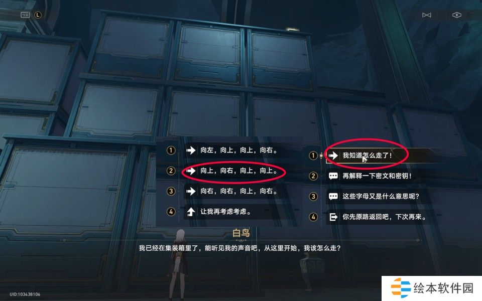 再之后的选项中分别选择「我知道怎么走了!」、「向上,向右,向上,向上」