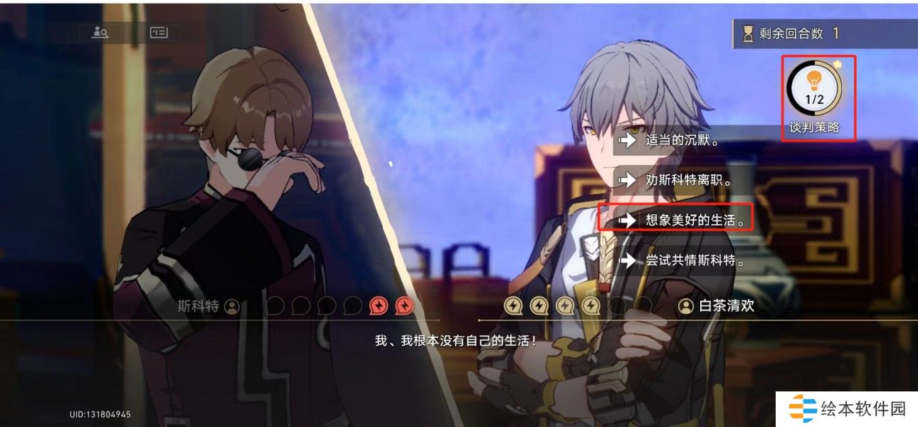 第三轮:首先选择谈判策略里面的【情绪调动】-再选择【想象没好的生活】
