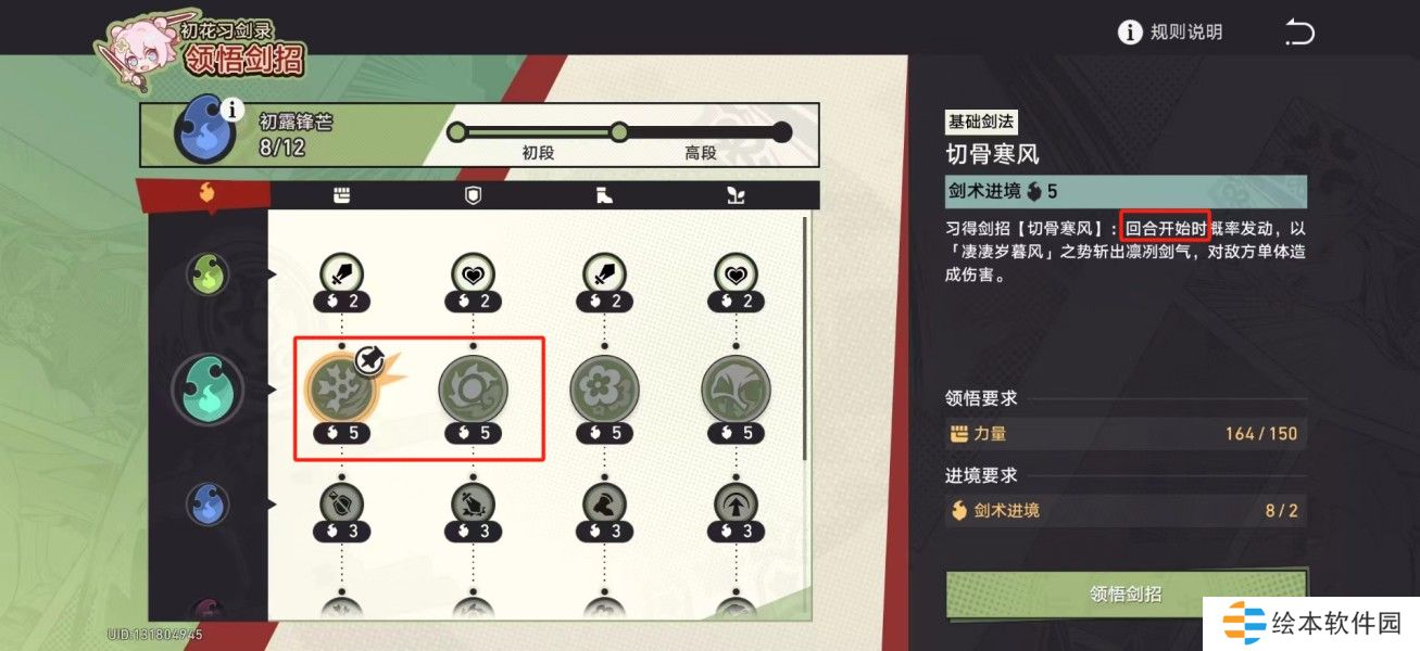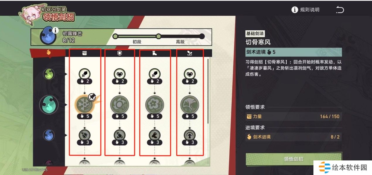 剑招分四大类:【力量】、【韧性】、【灵敏】、【感知】,需要按数列去看,最开始我有点混乱,这样梳理一下逻辑就很好理解了;