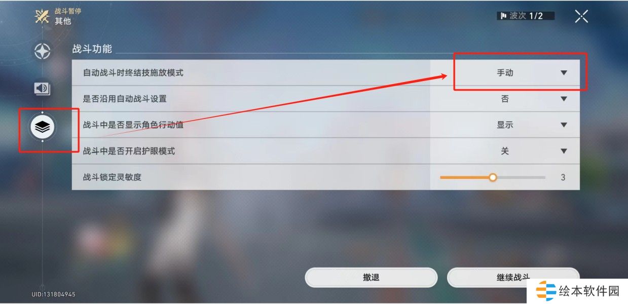 PS:战斗是强制自动但是可以自己设置手动释放终结技,设置方法如下: