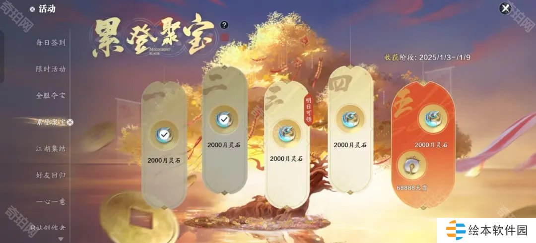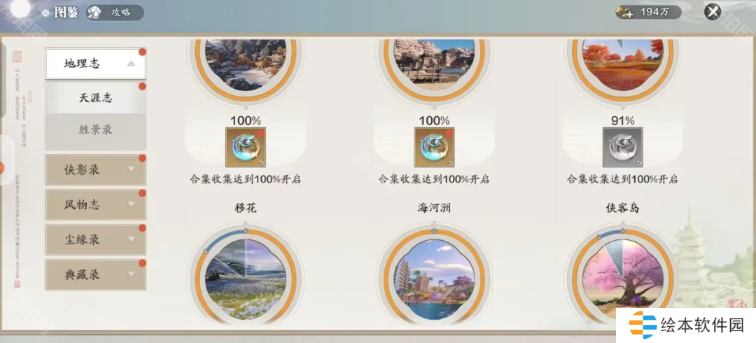 地理志、侠影录、风物志、尘缘录、典藏录都能去解锁,所有加起来奖励的月灵石非常可观。