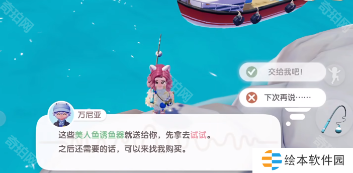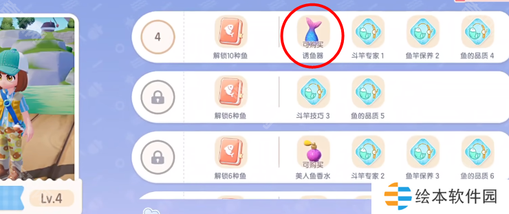 钓鱼等级达到4级时会解锁道具【美人鱼诱鱼器】