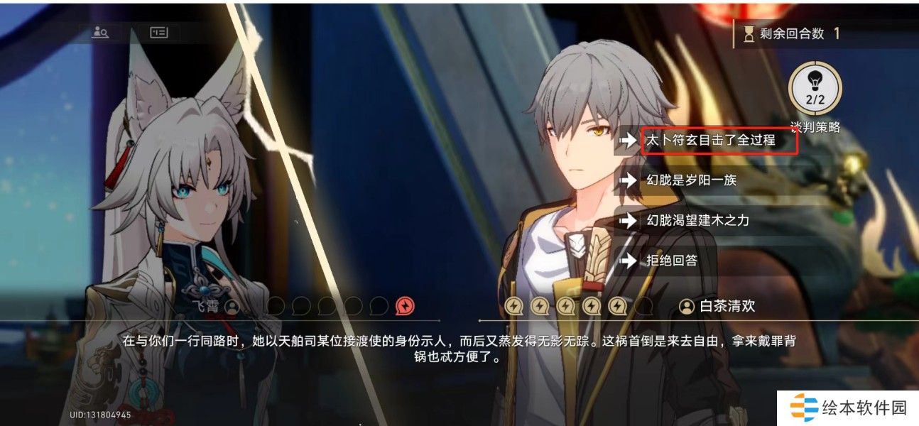 如果第二回合没有选择情绪调度,第三回合:选择【太卜符玄目击了全过程】,即可完成谈判