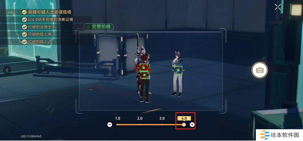 3、拍摄照片,焦距拉到3.0,镜头对准他们三个,等待左侧提示都满足需求之后拍照即可(无需移动等待条件满足即可)