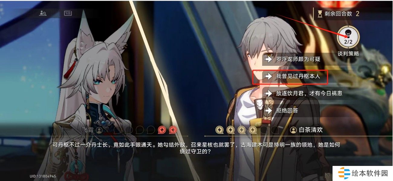 第二回合:选择【我曾见过丹恒本人】,可以先选择谈判策略里面【情绪调动】再做选择即可直接谈判成功。