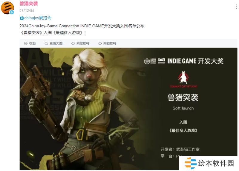 出于好奇,笔者进入《兽猎突袭》的b站主页,查看过往动态,发现这款作品居然入围了2024ChinaJoy-Game Connection INDIE GAME开发大奖最佳多人游戏。这一奖项征集独立作品,对任何题材、任何类型游戏一视同仁,致力于选出最有才华和创意的作品。