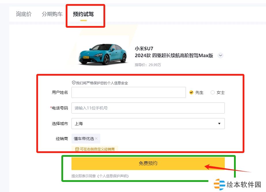 官网预约上门试驾方法: