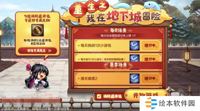 角色参与游玩小游戏,游玩过程中可消耗角色的疲劳值。