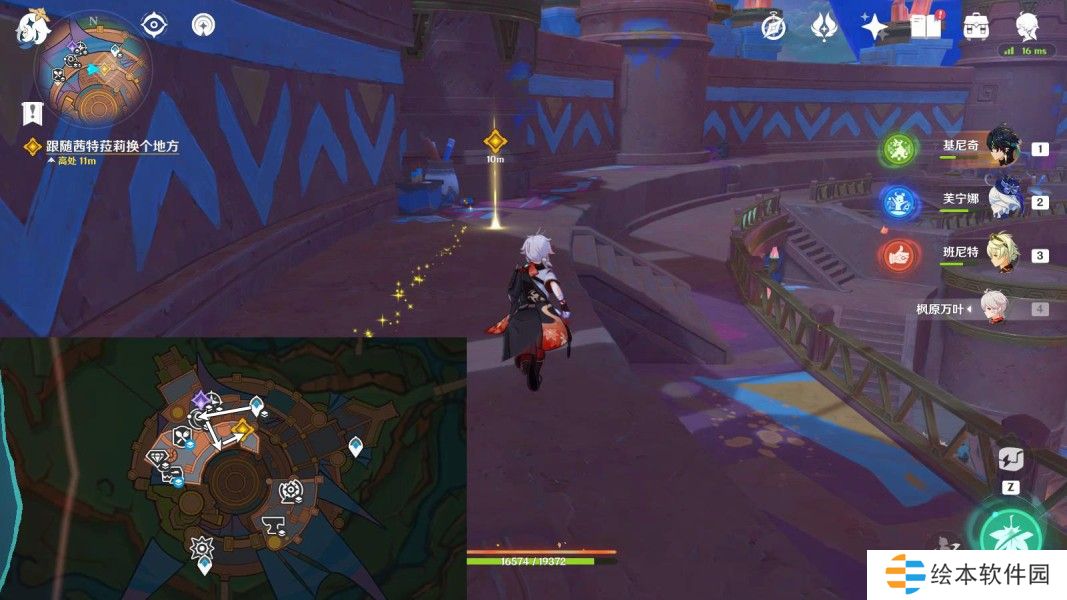 往地图的西北方向走,前往台阶上,与玛薇卡对话2分钟