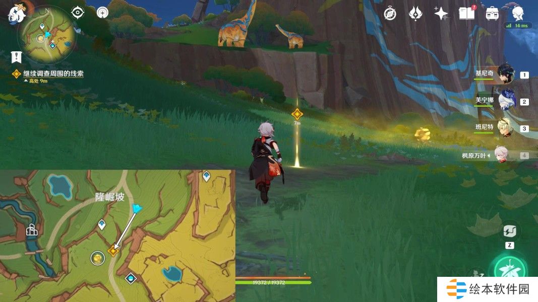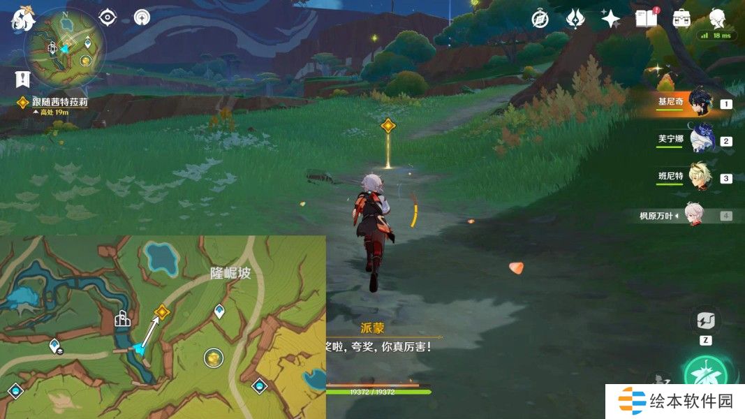 往地图西南方向走,前往山坡上,与欧洛伦对话4分钟