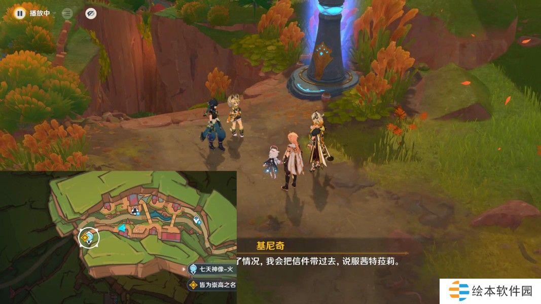 ▶前往石柱下,与欧洛伦对话3分钟;