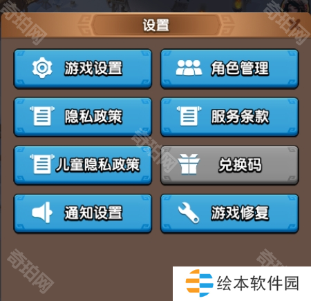 2、进入设置页面,点击兑换码,输入礼包码后点击提交即可