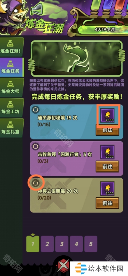 每天会派发6个日常任务,完成当天全部任务后可在“炼金大师”一栏领取丰厚奖励。奖励包含: