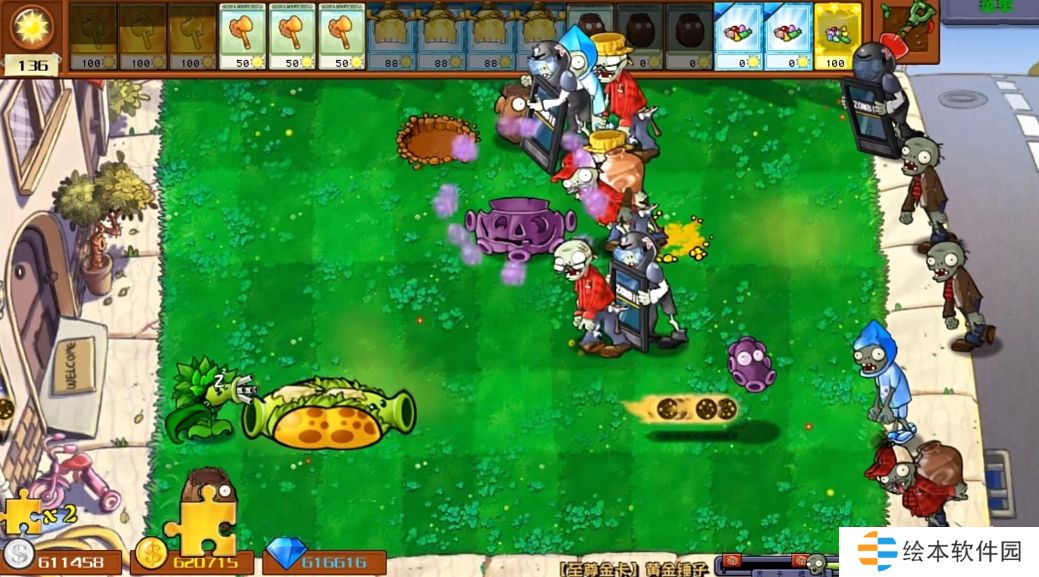 4、黄金锤子的关卡里面可选择的植物比较少,主要是依靠黄金锤子的卡片合成植物。