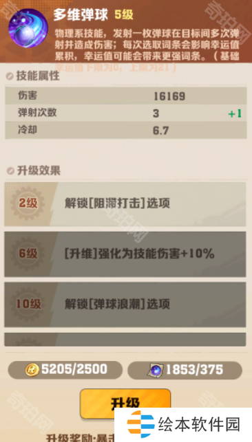 弹球重击:弹球体积增大,击退效果+25%,伤害+20%,点数增加5点